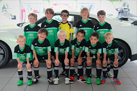 Nach dem letzten Training machte sich ein Tross aus F1-Spielern, Trainern, Eltern und Fotograf auf den Weg zum Autohaus Ivacic. Die Trikots wurden nun auch offiziell von Bernd Ivacic an die sichtlich stolzen Fußballer der TSG übergeben.